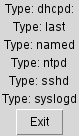 foreach type { dhcpd: last named ntpd sshd syslogd } {